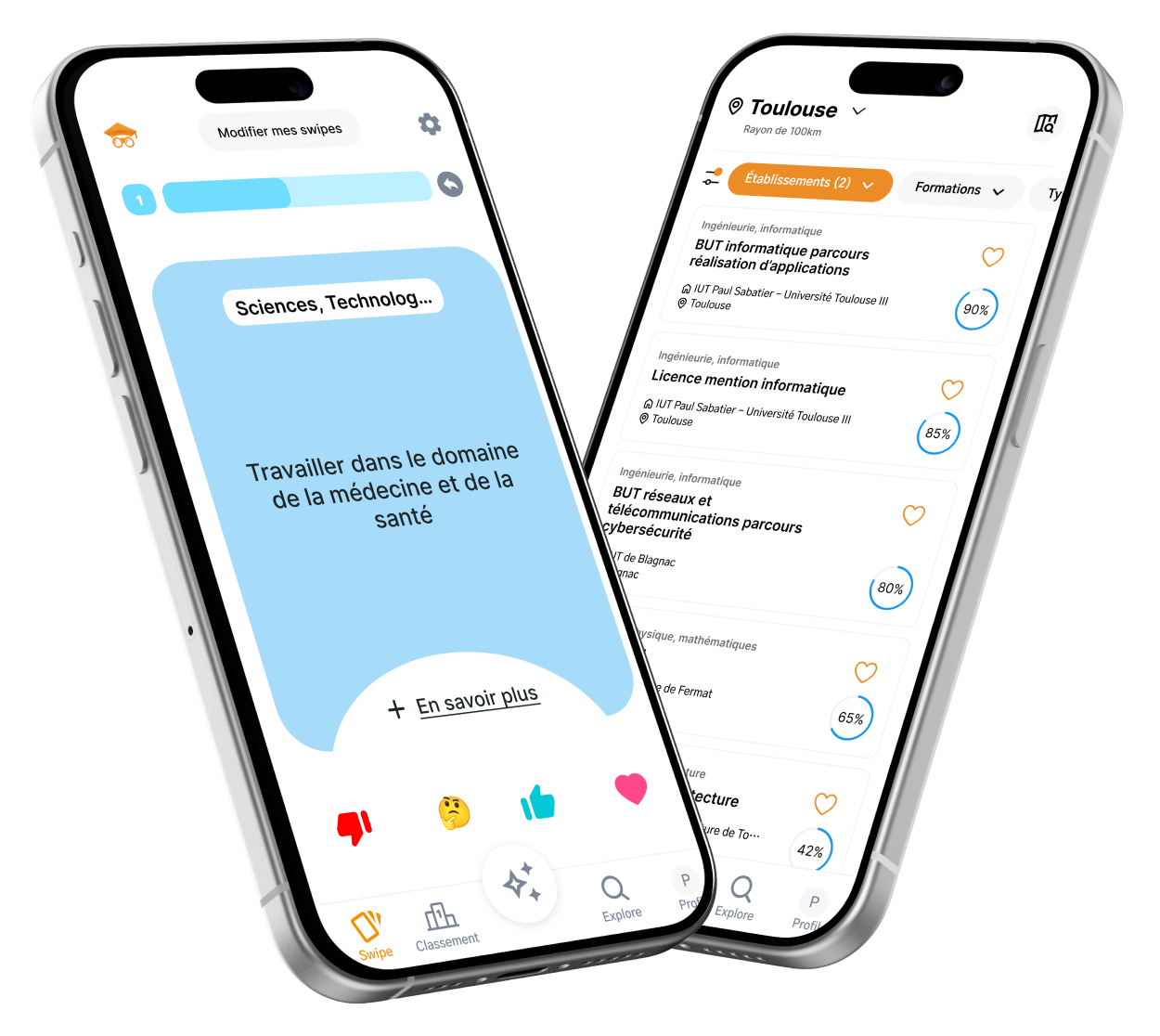 Tu peux utiliser Hopteo gratuitement : swipes des questions, reçois des suggestions personnalisées de formations et crées ta liste de vœux en quelques clics. Et si tu veux booster ton orientation avec encore plus d’outils, opte pour Hopteo+ pour le prix d’un fast-food. Ca change des conseillers privés à 300€.